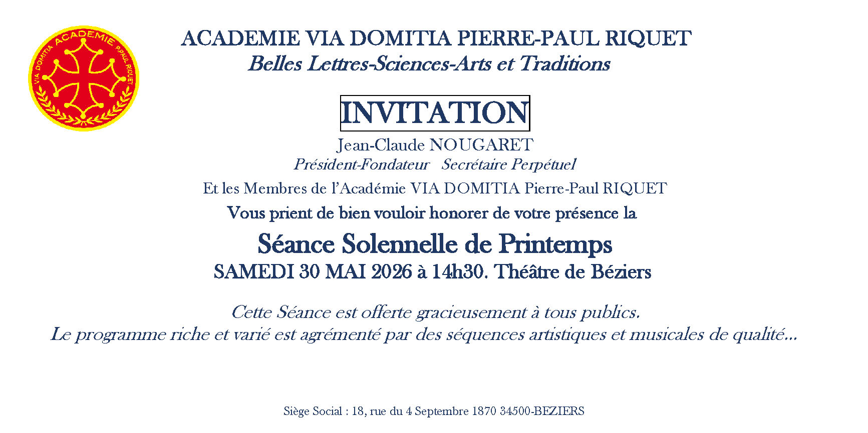 Notre site ACADEMIE VIA DOMITIA PIERRE-PAUL RIQUET utilise des cookies pour réaliser des statistiques de visites, partager des contenus sur les réseaux sociaux et améliorer votre expérience. En refusant les cookies, certains services seront amenés à ne pas fonctionner correctement. Nous conservons votre choix pendant 30 jours. Vous pouvez changer d'avis en cliquant sur le bouton 'Cookies' en bas à gauche de chaque page de notre site. En savoir plus